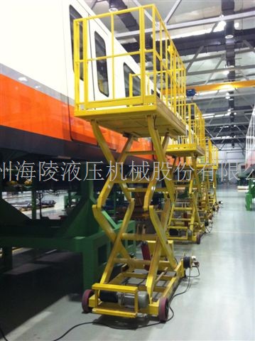 500KG剪叉式液壓升降平臺應(yīng)用于中車南寧軌道交通