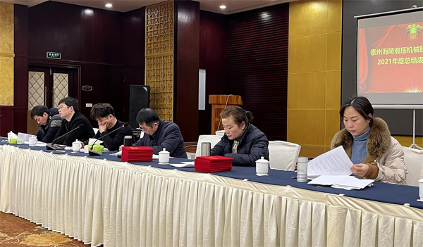 2022年1月20日上午9時許,泰州海陵液壓機械股份有限公司在泰州賓館召開2021年度會議暨年度總結表彰大會,董事長丁克芳、董事會所有成員及全體職工出席會議!